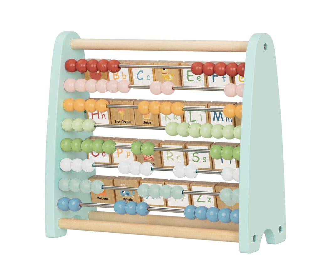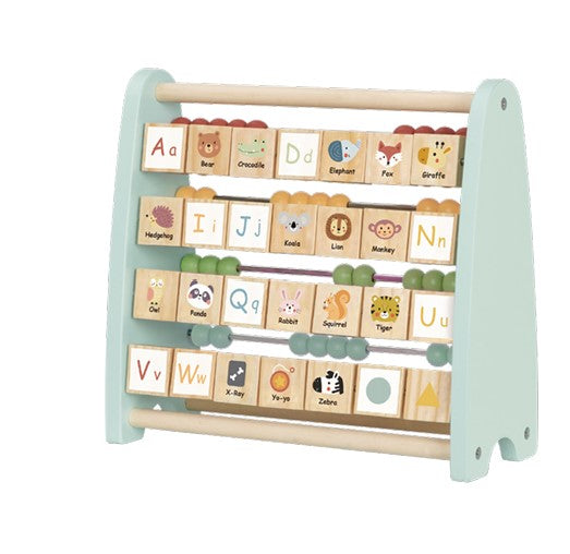 On one side, children can explore the timeless appeal of a classic bead abacus, perfect for honing early counting skills and mathematical concepts. Meanwhile, on the reverse side, a delightful surprise awaits—a unique alphabet abacus featuring both upper- and lower-case letters adorned on the blocks. Each block's back showcases an illustrative image corresponding to the respective alphabet, transforming learning into a playful and immersive experience.