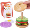 Stacking games bring great fun to children while teaching them many essential skills and competencies. This TOOKYLAND stacking comes with a twist: instead of stacking simple shapes, the child stacks ingredients to create a burger. The set includes lettuce, beef, onion, cheese, bacon, tomatoes, egg, cucumber, a top and a base bun. The ingredients are rich in colour and come in real sizes to create a realistic, stimulating experience. The set also includes five double-sided printed cards with ten orders to guide the little chefs. This game teaches them food recognition, stimulates their imagination through role-play, and exercises their logic, hand-eye coordination, and social skills. The set is made of high-quality natural wood and some pieces are made of felt. Painted with non-toxic, water-based paint for safety. This burger set is the perfect home or classroom game, and it encourages children to sit down, focus, and learn skills away from screens. It makes a good gift for children three years and above. Dimension: 9.4 x 9.4 x 9.6 cm (3.70 x 3.70 x 3.78 in)