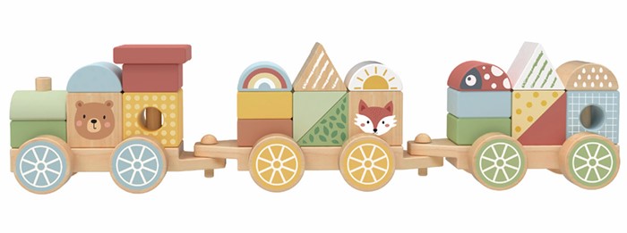 Crafted from high-quality, FSC certified timber and painted with child-safe, non-toxic paints, this bright and cheerful train set prioritizes safety and durability. Parents can rest assured that their little ones are enjoying hours of safe and enjoyable play. Whether learning to stack, sort, or simply exploring their creativity, the Stacking Blocks Train is sure to become a cherished favorite in any playroom or nursery.